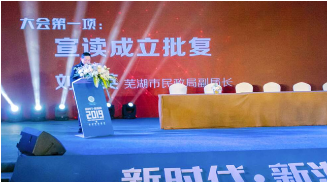会上,芜湖市民政局副局长刘祖英宣读了同意芜湖浙江商会成立的复批。
