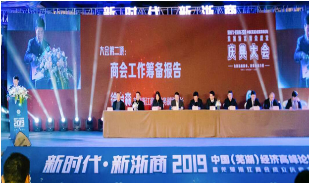 芜湖浙江商会常务副秘书长徐台森向大会作芜湖浙江商会成立筹备工作报告。他介绍,为贯彻《中共中央国务院关于加强和改进新形势下工商联工作的意见》精神,充分发挥商会组织发展和管理会员,协调和服务企业的组织能力,搭建浙江、芜湖两地经济建设和企业之间相互支持、合作共赢的平台,经过半年多的筹备,并报芜湖市民政局批准,芜湖浙江商会应运而生,着力打造前瞻型、服务型、实干型商会。